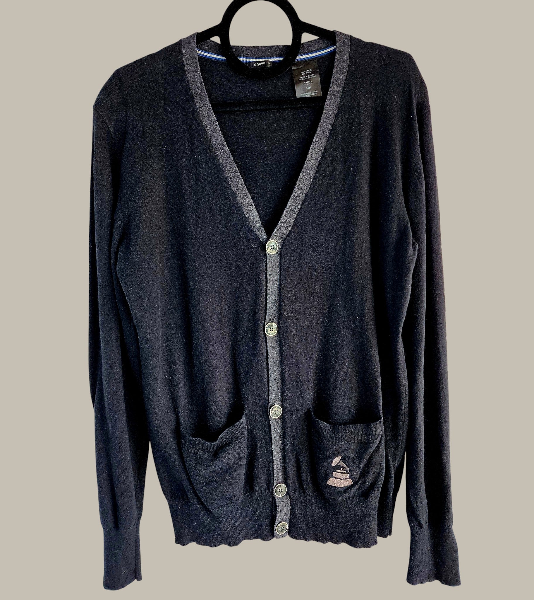 Agave - Vintage - Blk / Grey Cardigan - Cotton / Wool Medium