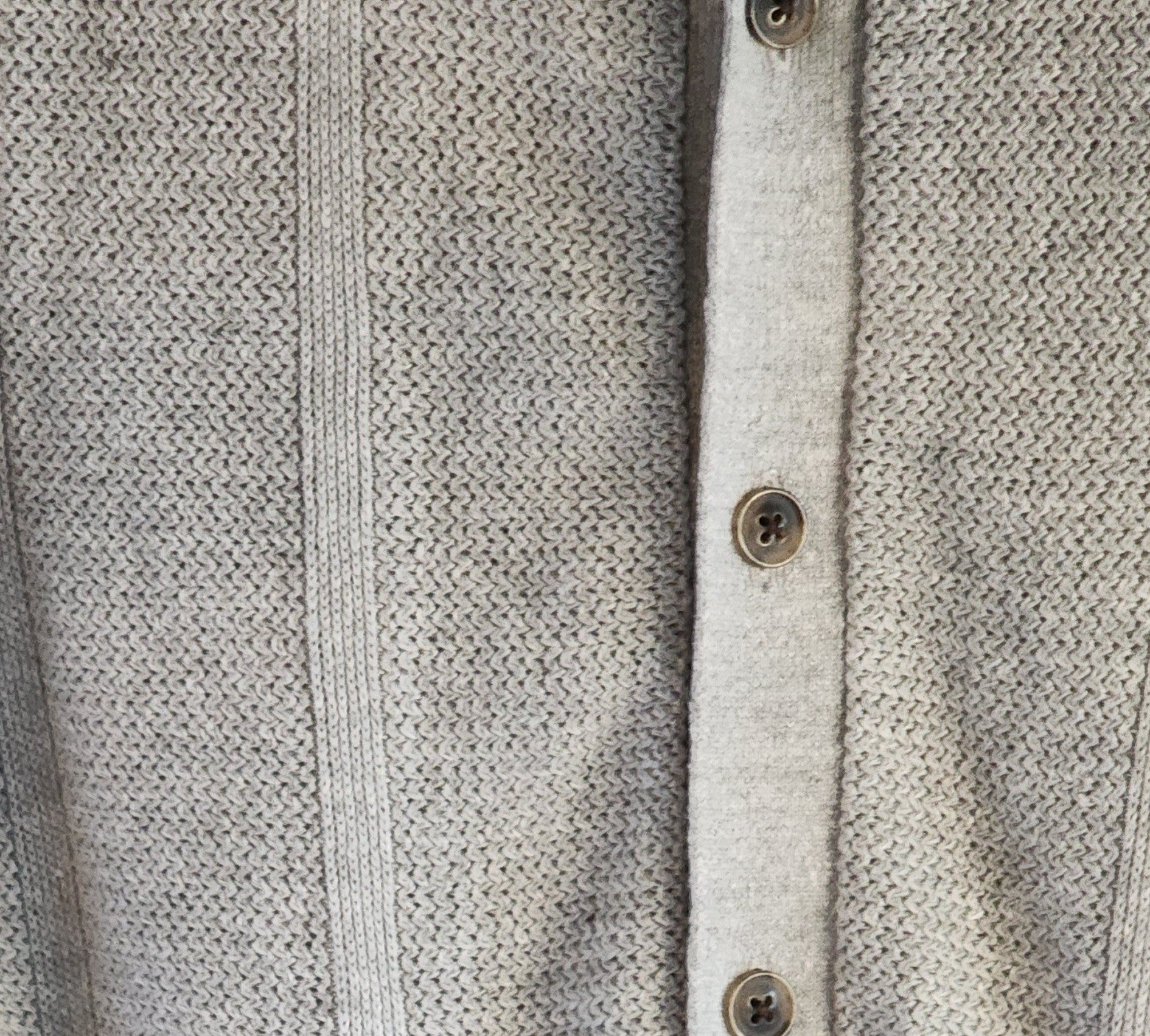 BR - Grey Cotton Linen Button Front Crochet Short Sleeve Shirt (S)