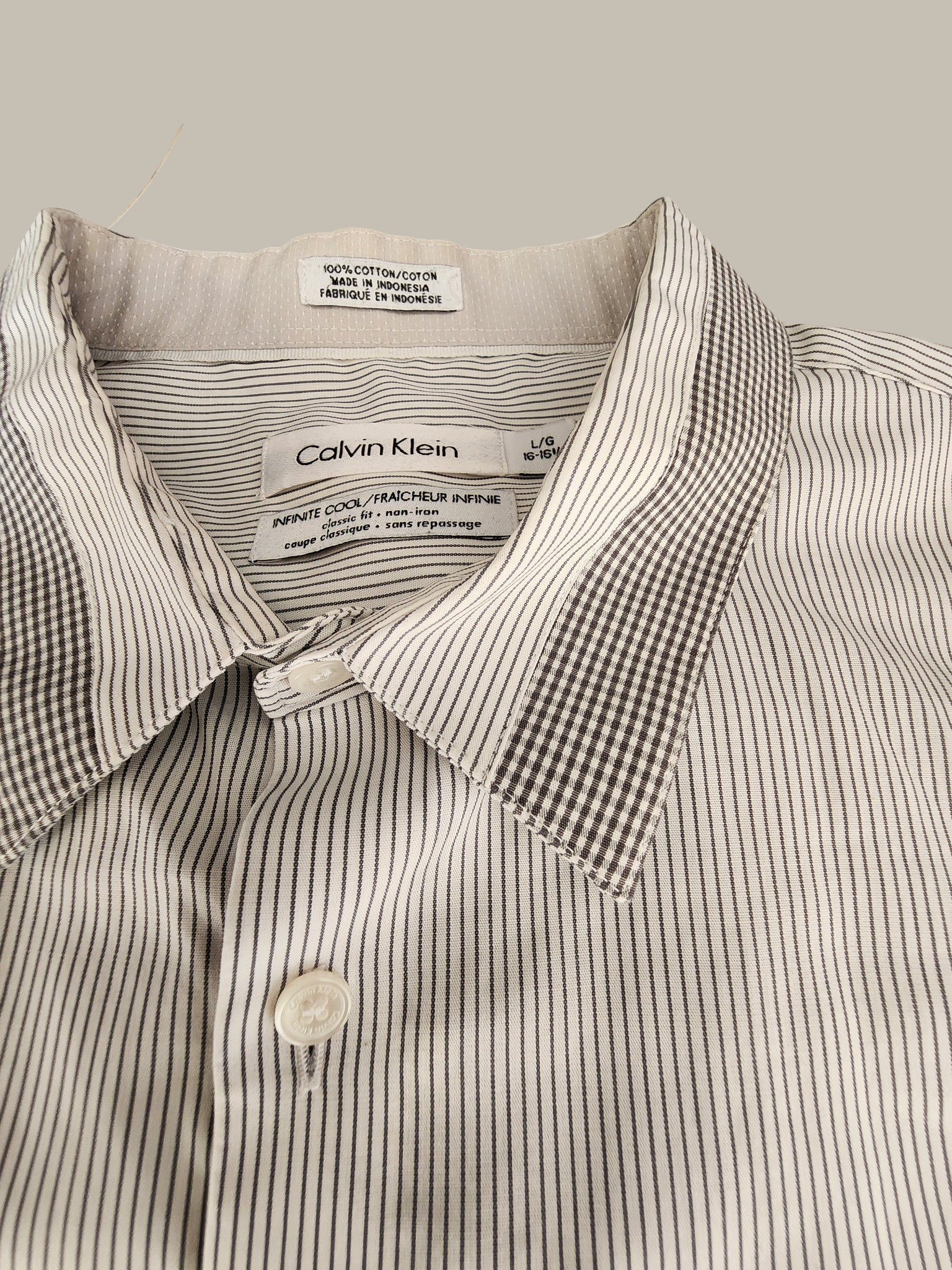 Calvin Klein - 100% Cotton - Grey / White Pin Stripe Large
