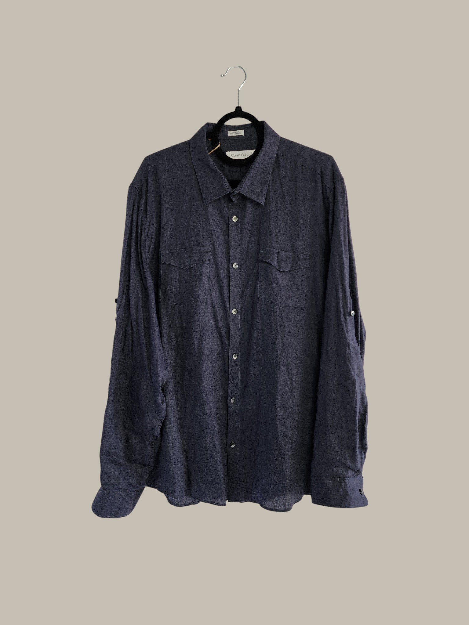 Calvin Klein - L/S Linen Shirt - Navy XL
