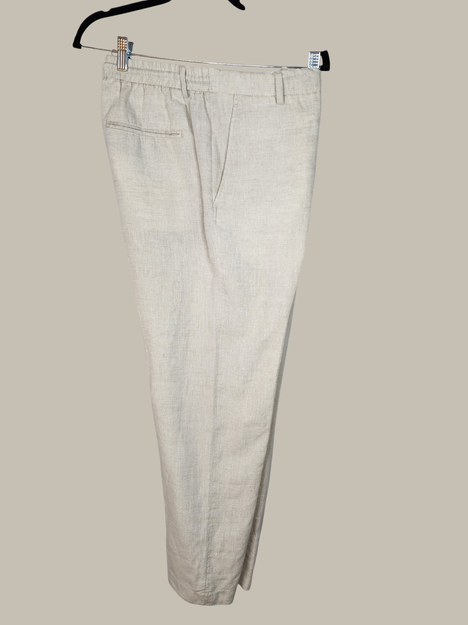 Zara Men- 100% Khaki Linen Pants - Elastic Draw String - Pants (34/30)